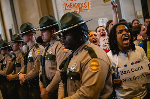 4月6日,美国田纳西州。支持禁枪的抗议者在州议会大楼外举行抗议活动。(图片来源:《纽约时报》)