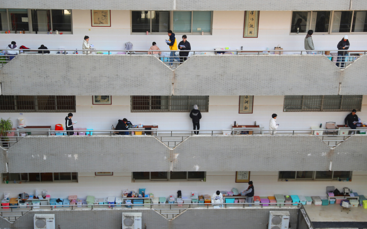 2022年12月13日,在湖南省衡阳市的南华大学,学生在复习备考。新华社发(曹正平 摄)