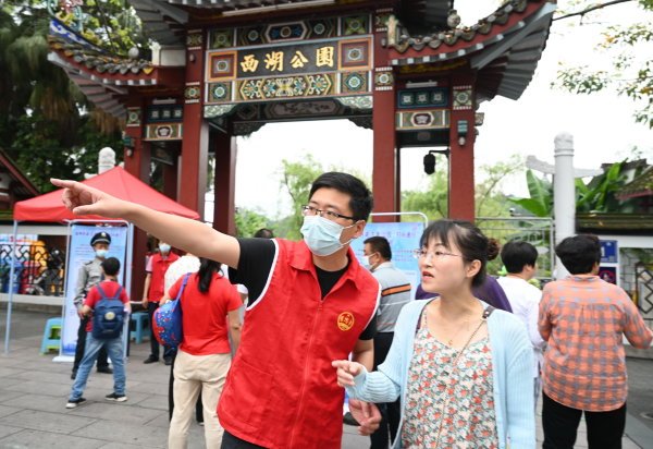 身着马甲的青年志愿者活跃在各个角落来源:新华社
