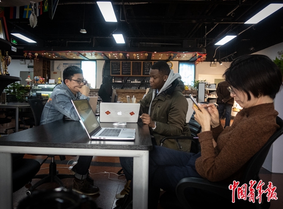 2021年3月4日,北京市海淀区中关村创业大街,创业者们正在车库咖啡里移动办公,寻找创业和合作的机遇。中青报·中青网记者李峥苨/摄