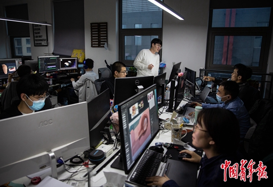 2021年3月4日,北京市昌平区一个创业孵化器内,科普短视频节目“柴知道”的制作团队在电脑前工作。目前,视频“up主”等灵活就业的新职业已成为许多青年的就业和创业目标,他们的权益如何保障也是值得关注的话题。中青报·中青网记者李峥苨/摄