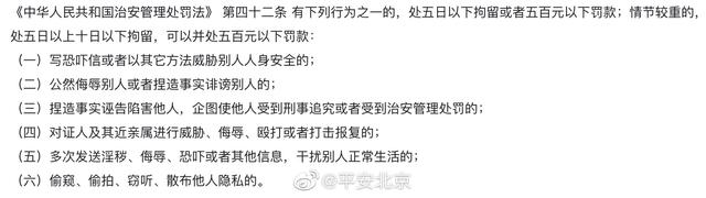 “平安北京”官博还配图《中华人民共和国治安管理处罚法》的截图。