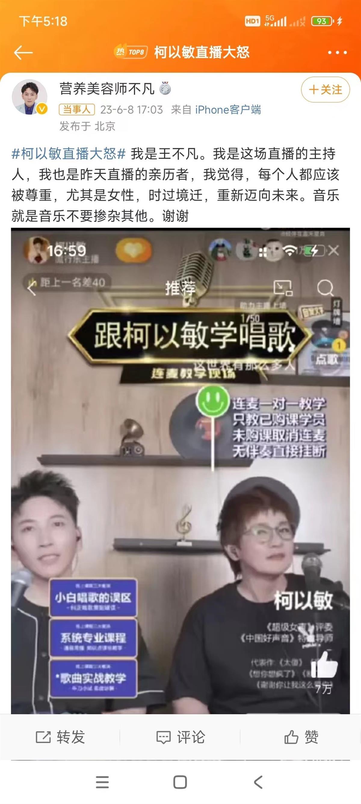 近日,沉寂许久的歌手柯以敏直播售卖“跟柯以敏学唱歌”课程,却在连麦时遭到了网友的“集体捣乱”,连续被几位网友辱骂。柯以敏对此十分破防,当即表示,“我要报警,把他的ID调出来。我不会放过你的,太过分了,你这个孩子太没有教养了”并且还扬言“我有公安的朋友……这种肯定拘留15天!”