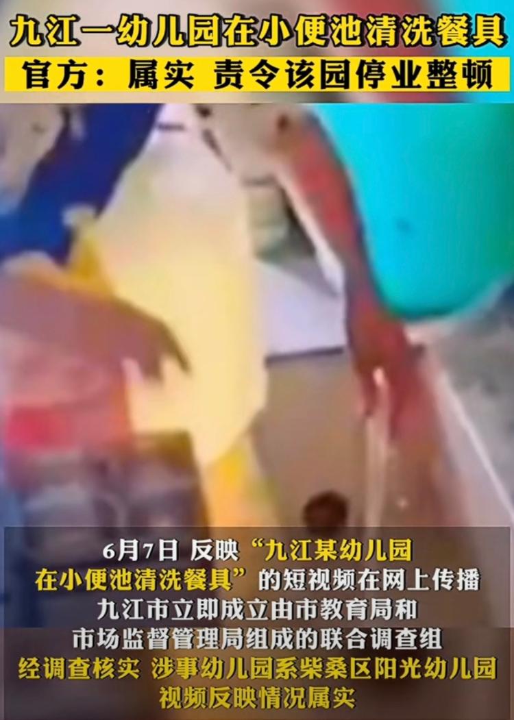 在小便池洗餐具,而且是在幼儿园洗孩子的餐具?近日,反映“九江某幼儿园在小便池清洗餐具”的短视频在网上传播,很多人看到的第一反应都是“不相信”!但人们期待的反转并没有出现,当地8日发布通报称:情况属实。