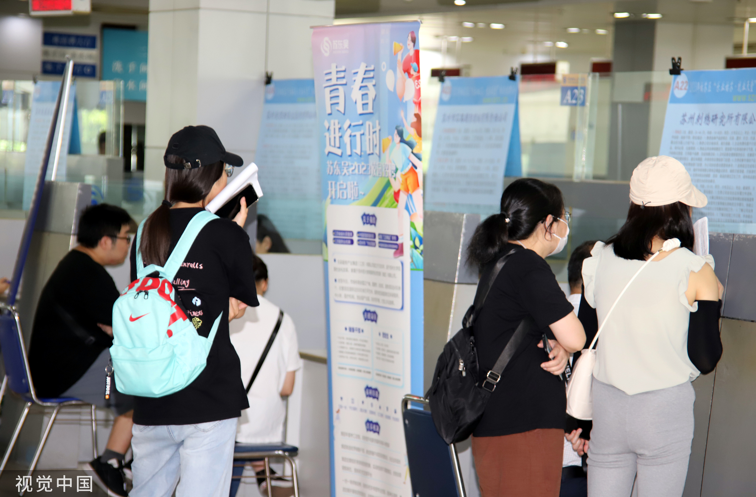 2023年8月5日,求职者在综合招聘会上寻找职位。