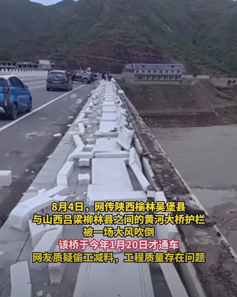 跨省黄河大桥的石头护栏,竟然被风吹倒了?