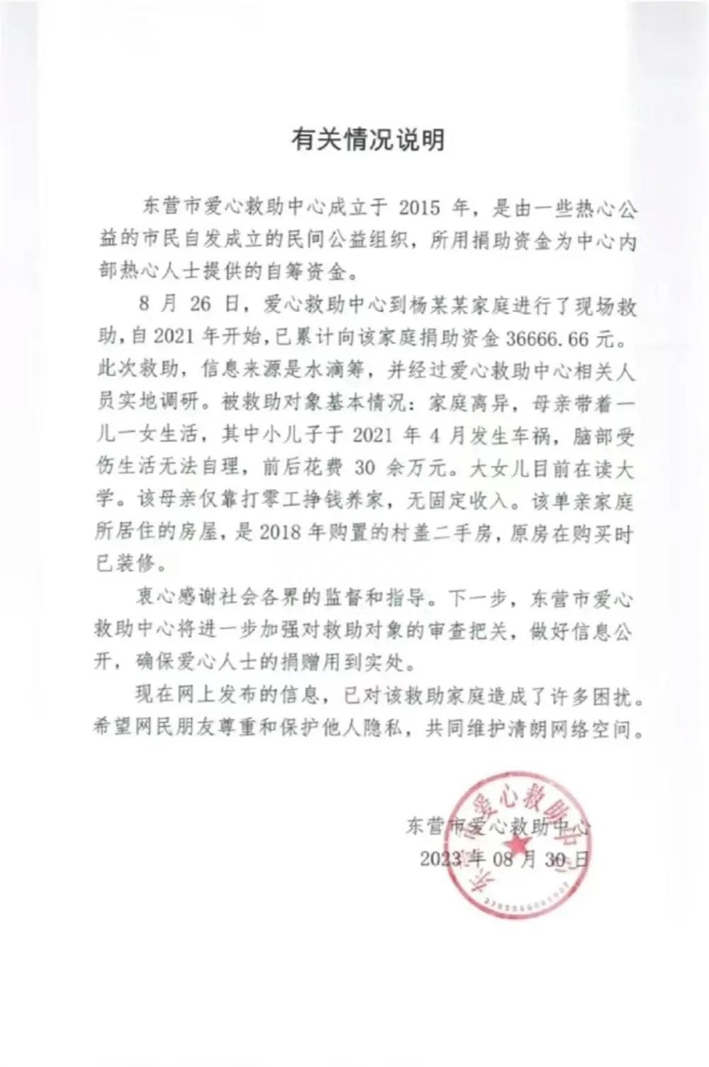 东营市爱心救助中心负责人回应,该女生是单亲家庭孩子,还在读大学。2021年4月,其弟弟出了车祸,脑部受伤生活无法自理,母亲仅靠打零工养家。家里房子系2018年购买的已装修好的二手房,照片里穿戴的“名牌”装饰品一共花了190多元,手机、手表是借同学的。9月1日,东营市相关部门透露,经政府部门实地走访调查,女孩一家确实存在经济困难。