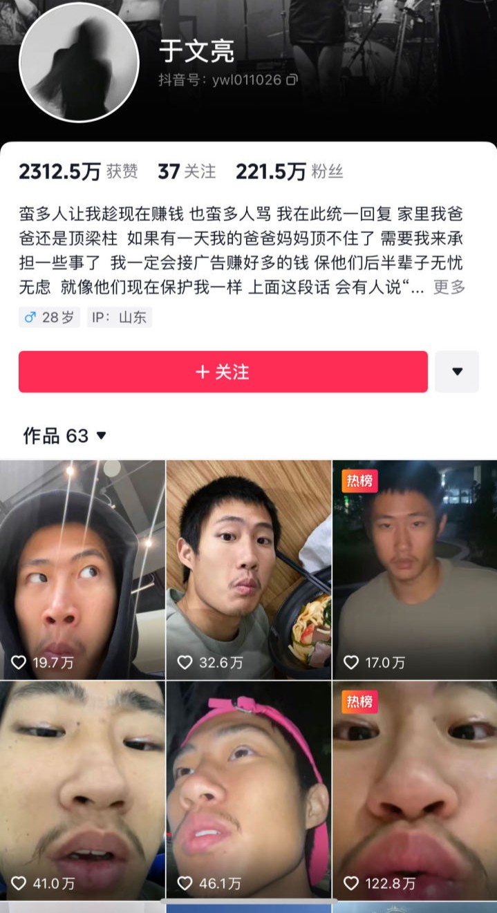 于文亮短视频主页截图。