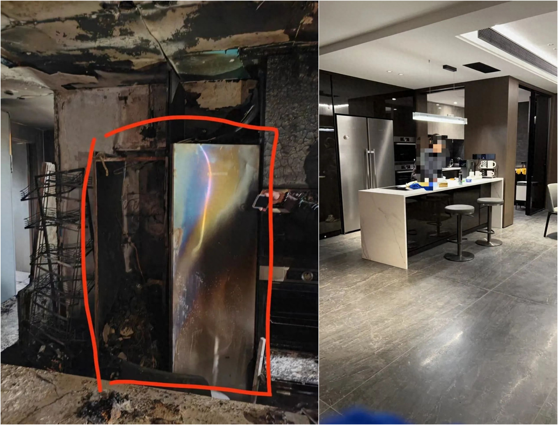 火灾前后房间内对比图 (来源:温州晚报)