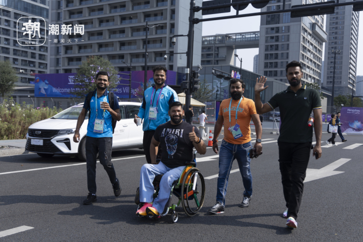 印度代表团的运动员和教练员们走出亚残运村。潮新闻记者倪雁强摄