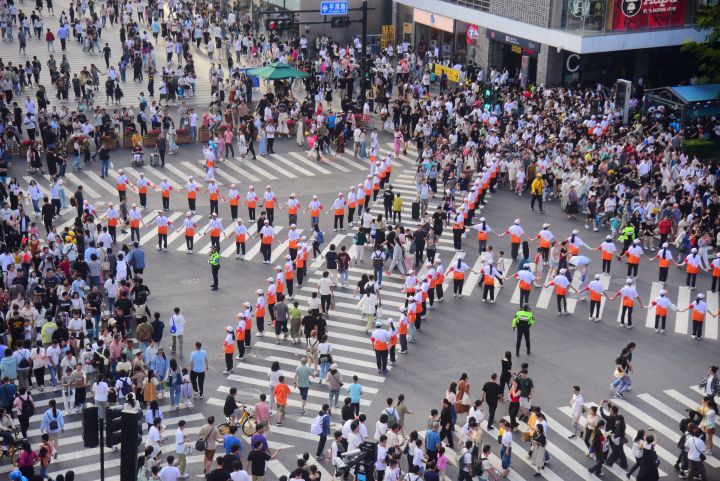 这温度来自一辆辆在市区主要道路前礼让的车辆,来自穿着红色小马甲的城市志愿者们,来自青春洋溢、热情周到的“小青荷”们,来自每一个坚守岗位、遵守规则的平凡的我们——我们都是城市故事的讲述者、城市文明的展示者。