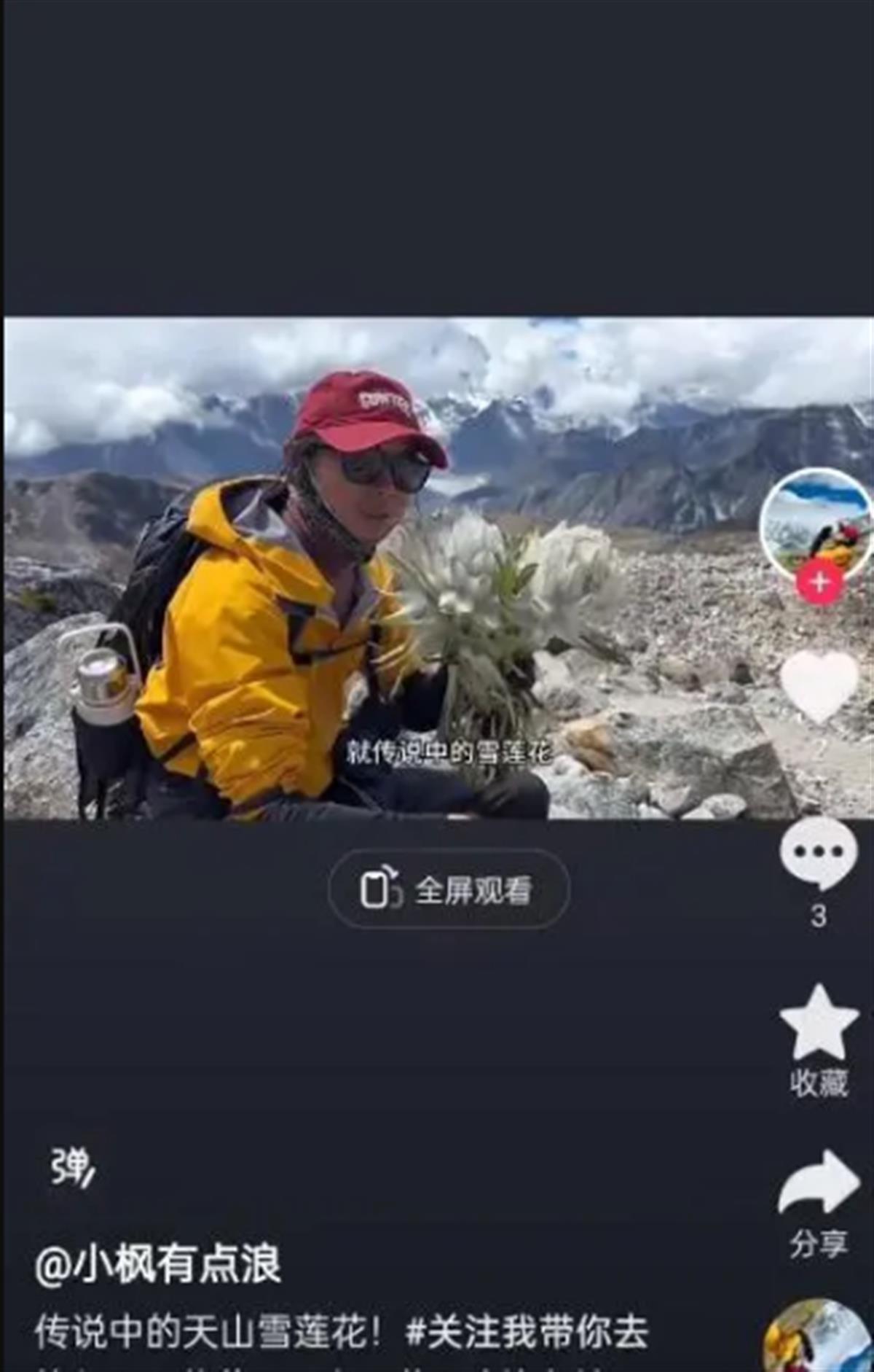 这一段话,信息含量很大。其一,涉嫌违规的似乎还有其他人。那么,是他自己采摘的,知道其行为违法于是推到朋友身上,还是真有“助手”不畏艰难险阻犯法呢?其二,他既然知道“天山雪莲”,只生存在5000米以上,那也应该知道“天山雪莲”可能属于国家保护的物种吧;其三,放开是谁采摘的不说,公然在镜头前展示自己破坏野生植物的行为,本身就匪夷所思。这是为了流量,连账号都不想要了吗?