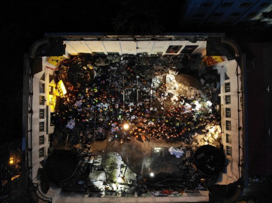 这是7月24日拍摄的齐齐哈尔市第34中学体育馆屋顶坍塌事故搜救现场(无人机照片)。新华社记者王松摄