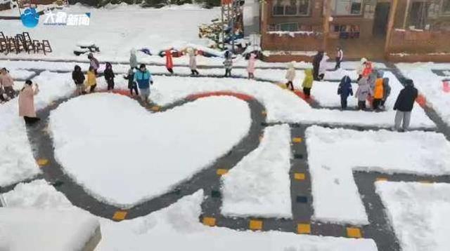 无独有偶,河南郑州一所幼儿园也借着大雪为小朋友们送上了一份惊喜。幼师们在操场上绘制了一个大大的“雪地迷宫阵”,让孩子们在玩中提升逻辑思维能力,寓教于乐。