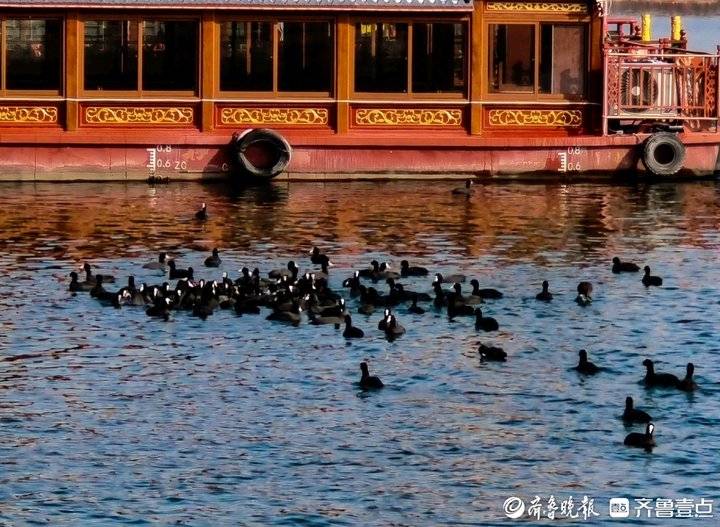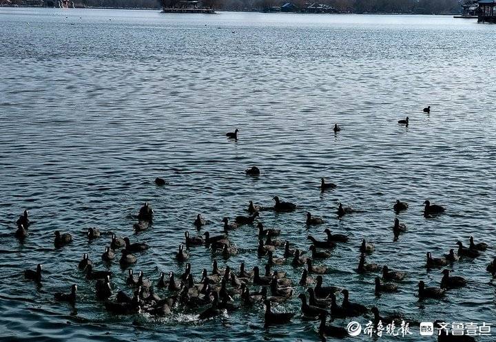 正月假日,济南大明湖游客如织,水中各类水鸟自由觅食、嬉戏,成了大家欣赏野趣的重点。