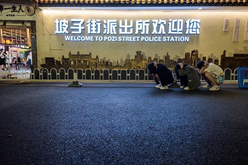 五一假期,湖南长沙天心区坡子街派出所成了网红打卡地。据媒体报道,不少游客到派出所门前,做出蹲下抱头的动作,假装自己被抓。派出所工作人员特地在大门口放置了一个喇叭,不停播放提示:“请文明打卡,严禁蹲下、抱头拍照,谢谢配合”。