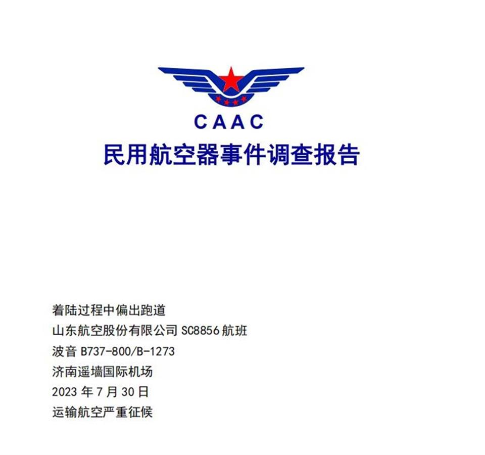 中国民用航空华东地区管理局航空安全委员会出具的山东航空股份有限公司SC8856航班波音B737-800/B-1273济南遥墙国际机场2023年7月30日运输航空严重征候