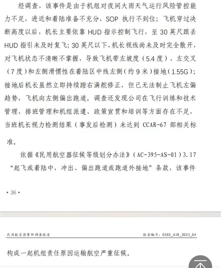 中国民航华东局航空安全委员会出具的民用航空器事件调查报告显示,塔台通报跑道有大雨后,机组仍继续着陆;事发前机场因不停航施工存在安全风险,曾被民航华东局限期整改。(据5月7日封面新闻)