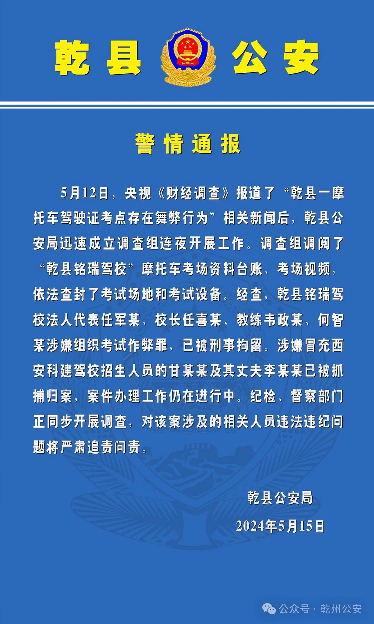 5月15日,陕西和河北当地警方都发布了警情通报,对央视点名的作弊考点进行调查,多名相关人员被刑拘。