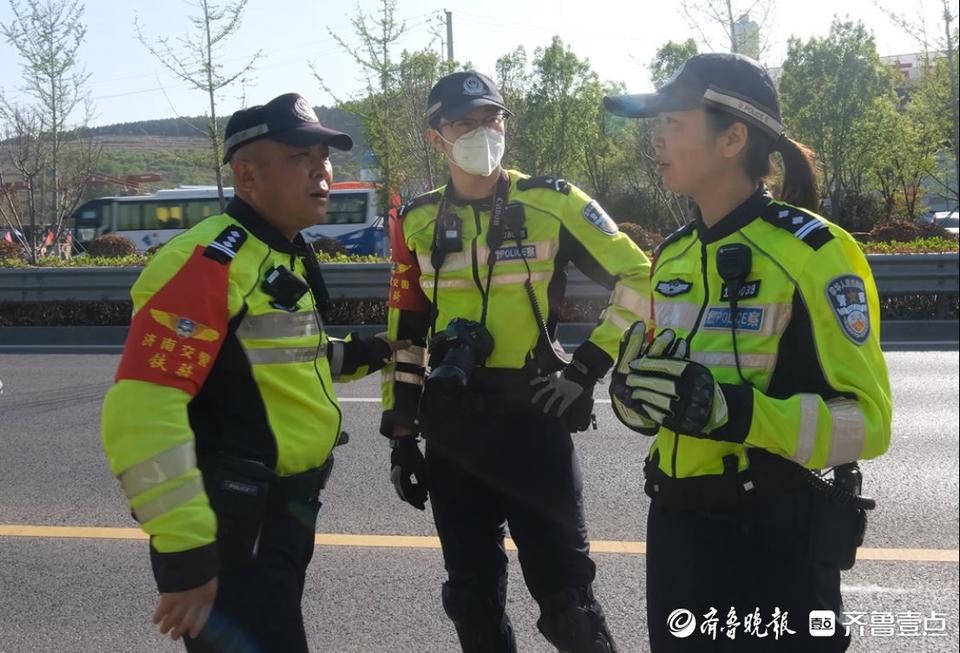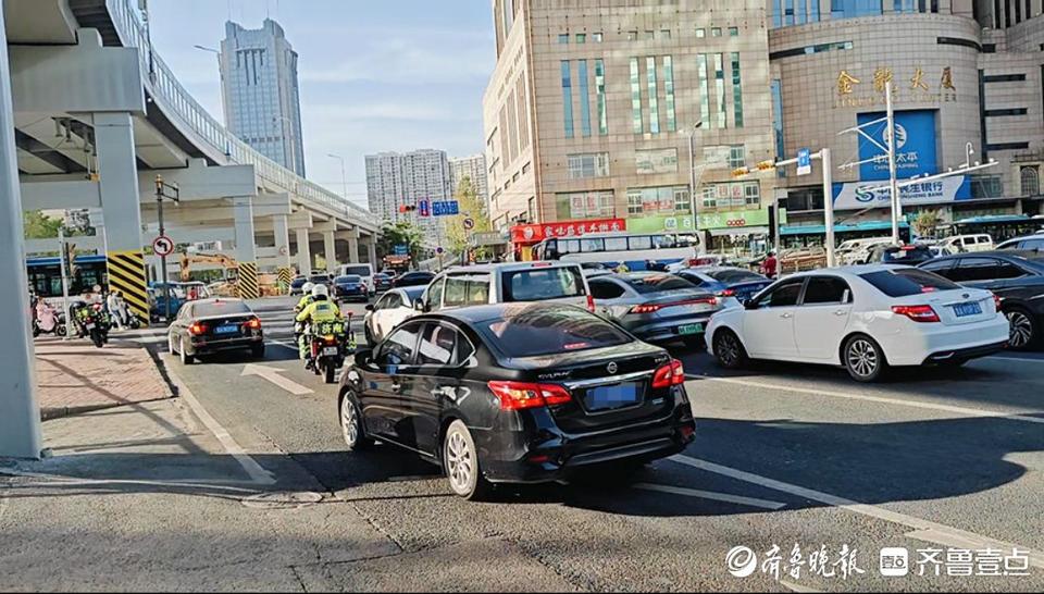 此时,济南交警高架路大队三中队中队长赵辉正带领数名铁骑队员,在此处开展交通整治,这是他们对路面的“常规检查”。