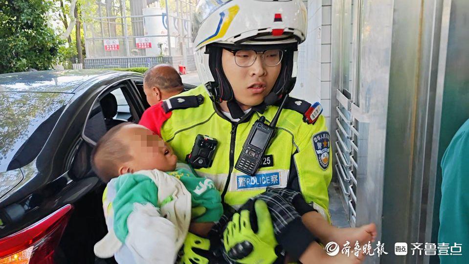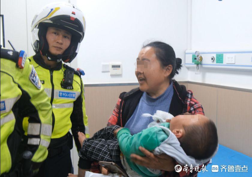 铁骑队员王瀚楠抱过孩子,冲进医院济南交警供图