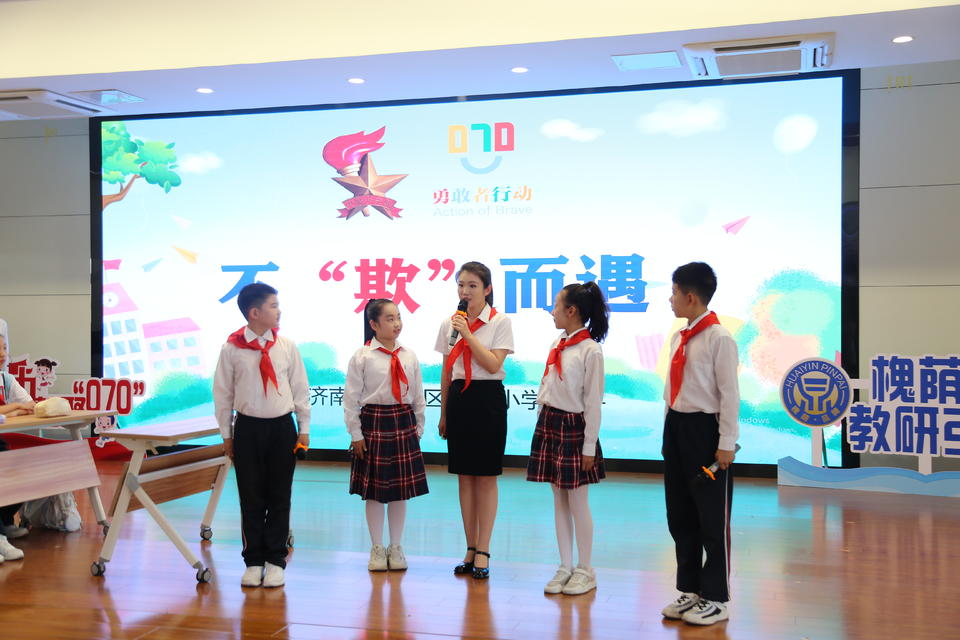 在济南市“070勇敢者行动”工作推进会现场,来自槐荫区的辅导员老师和队员们通过红领巾辩论赛、少先队活动课、红领巾小剧场、红领巾模拟法庭、辅导员沙龙等形式,情景式演绎了校园欺凌的成因、危害和处置方式。会上多部门联动成立“少年警校”,聘任“校园警长”,共同织密防欺凌安全网络。