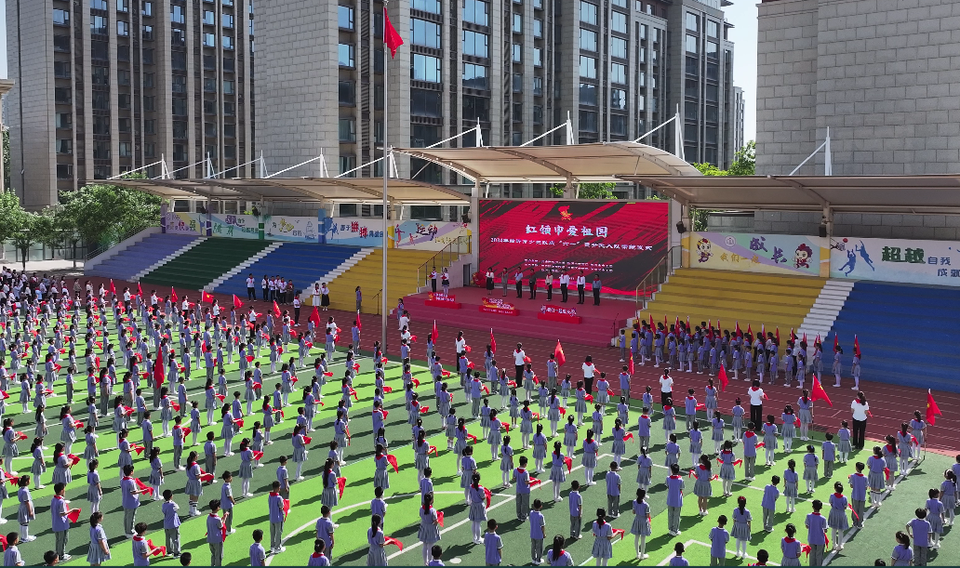 5月29日上午,伴随着激昂的鼓号和嘹亮的队歌,“红领巾爱祖国”山东省示范性少先队新队员入队仪式在淄博市周村区正阳路小学举行。优秀共产党员、共青团员代表和高年级队员为120名新队员佩戴红领巾,一同见证他们入队的光荣时刻,全体少先队员高举右拳,在队旗下庄严宣誓,时刻准备着为共产主义事业而奋斗。