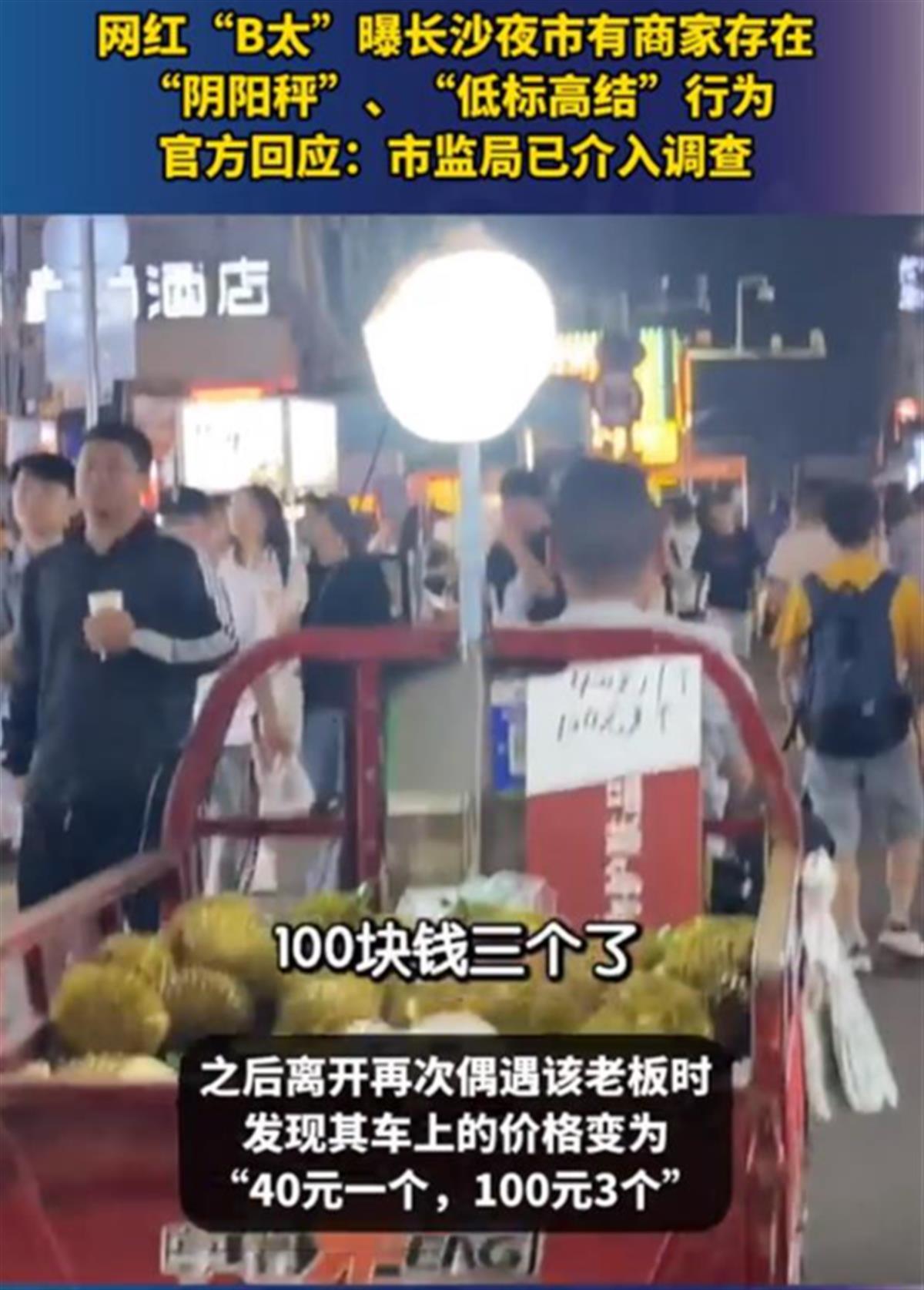 6月4日,网红“B太”发布视频称长沙夜市的商家存在“阴阳秤”“低标高结”行为。针对这一情况,长沙市天心区市场监督管理局一工作人员表示,已关注到该视频,目前相关部门正在核实中,如果存在违规行为肯定会依法依规进行处置。
