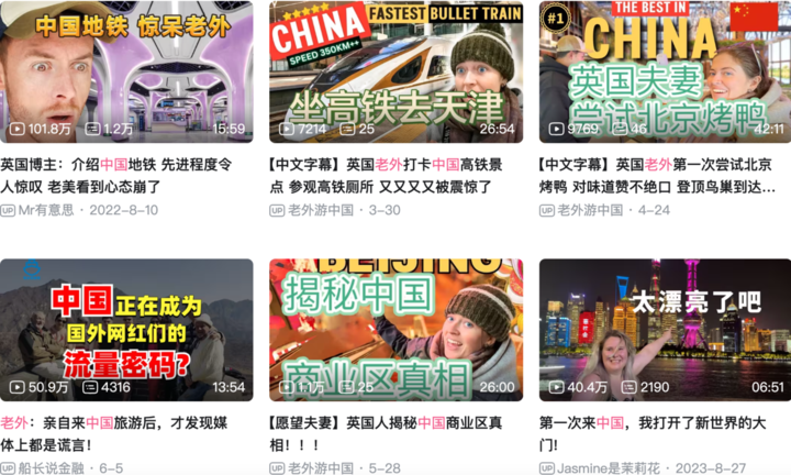 打开海外社交媒体平台,我们看到一大批外国人在中国拍的视频,标题上频繁出现的词有“unexpected”“never expected”“not what we expected”,或者一些惊叹词,用以描述他们受到的视觉与文化冲击。