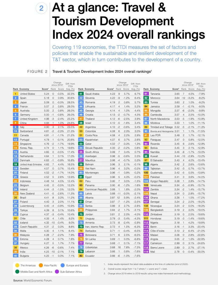 《2024年旅游业发展指数》显示:中国成为唯一一个进入促进旅游业发展前10名的发展中国家