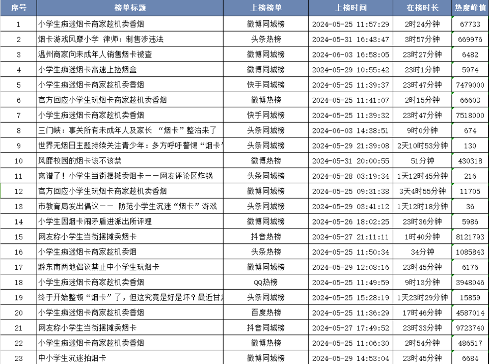 据齐鲁蛙眼舆情大数据平台监测显示,自5月25日至6月12日9时,相关话题全网信息量约5.62万条,形成23个话题热搜。