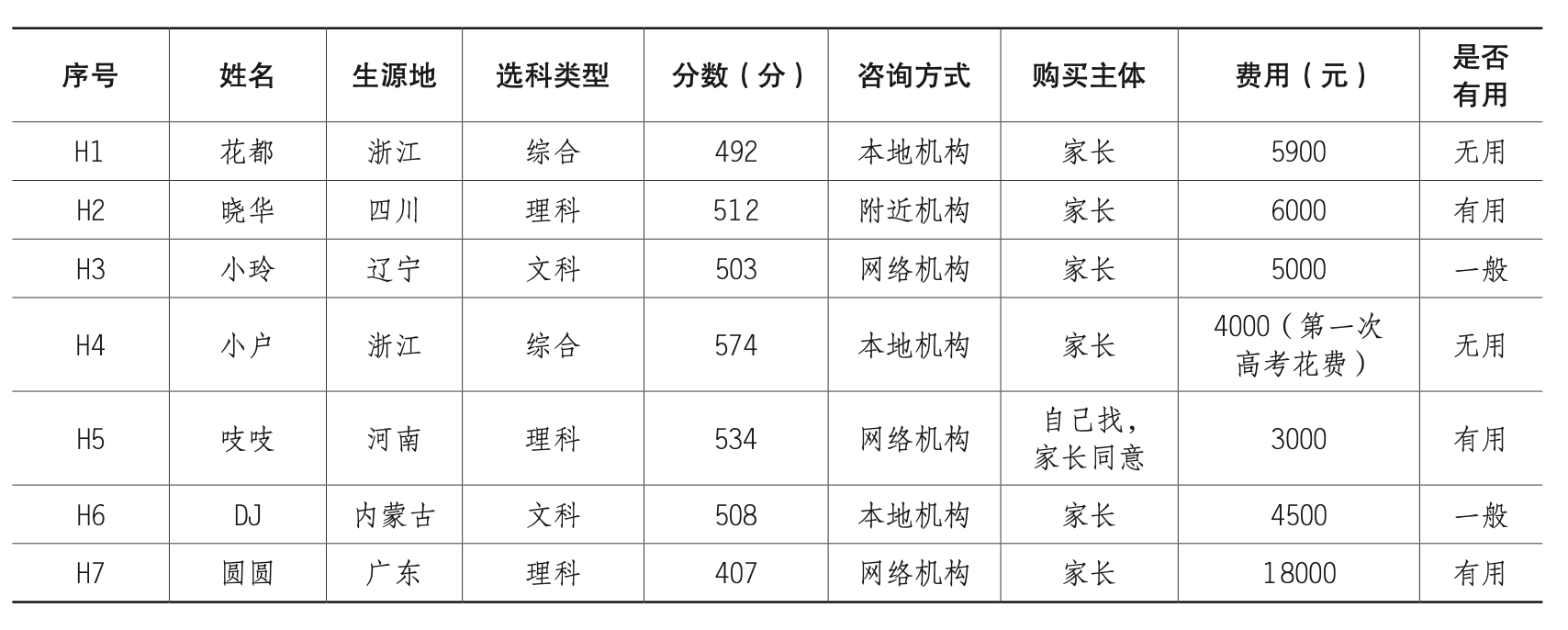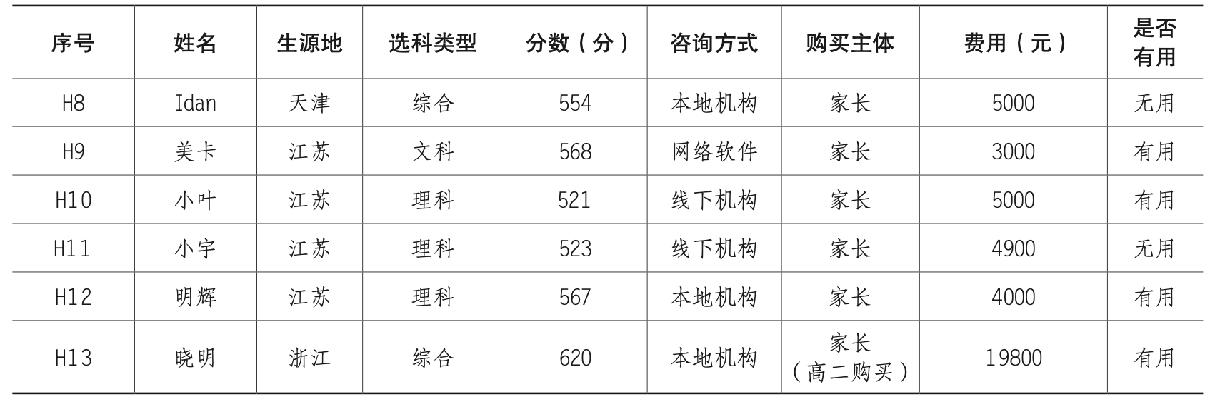 为了收集数据资料,研究者在2023年6月初加入数个高考志愿填报社群,从中梳理关于付费咨询填报的相关信息,并从中选取访谈对象进一步深入了解;另外,研究者还于2023年6月起进入N市某家升学规划机构实习,进行了三个月左右的田野调查。