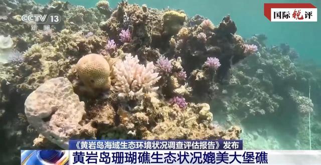 相比之下,中国保护监管下的黄岩岛生态呈现出生机勃勃的景象。根据中方多家专业部门和机构5月至6月联合展开的调查,黄岩岛海域海水水质、海洋沉积物质量等均为一类,鱼类样品中的重金属、石油烃等污染物残留量均低于评价标准限值;珊瑚礁生态系统健康,造礁石珊瑚群落状况良好,造礁石珊瑚物种多样性丰富。总的来说,黄岩岛的珊瑚礁生态系统健康状况,可以媲美世界著名的珊瑚礁——大堡礁。