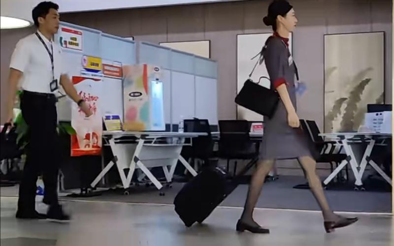 ▲湖南航空空乘人员着平底鞋上班。图/湖南航空视频号截图