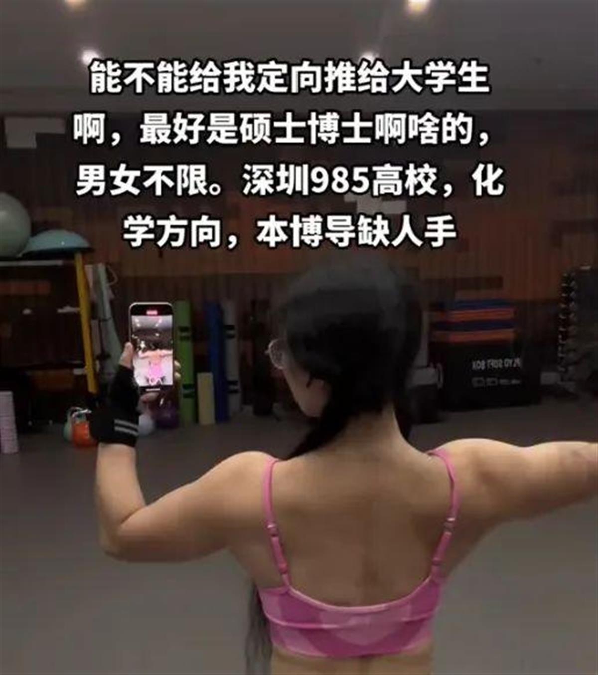 近日,哈工大深圳校区副教授杨雪梅的视频在网络走红。视频里的她喜欢在健身房举铁,秀肌肉之余,还不忘插播一则“招生广告”。