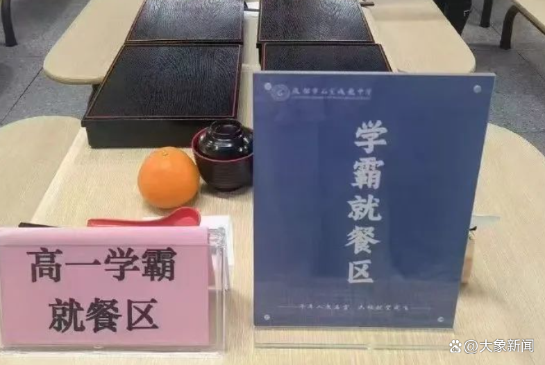 网传图片显示,该校一部分食堂区域的桌子,摆上了“学霸就餐区”和“高一学霸就餐区”的标示牌。根据另一张图片,对比可以发现,“学霸就餐区”的餐食标准要比“普通就餐区”高。有不少网友纷纷质疑,认为学校此举有区别对待学生的嫌疑。而面对质疑,涉事学校曾表示,这是对月考中优秀同学的奖励,会给学生发一个文创产品和一顿免费的餐食。