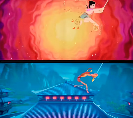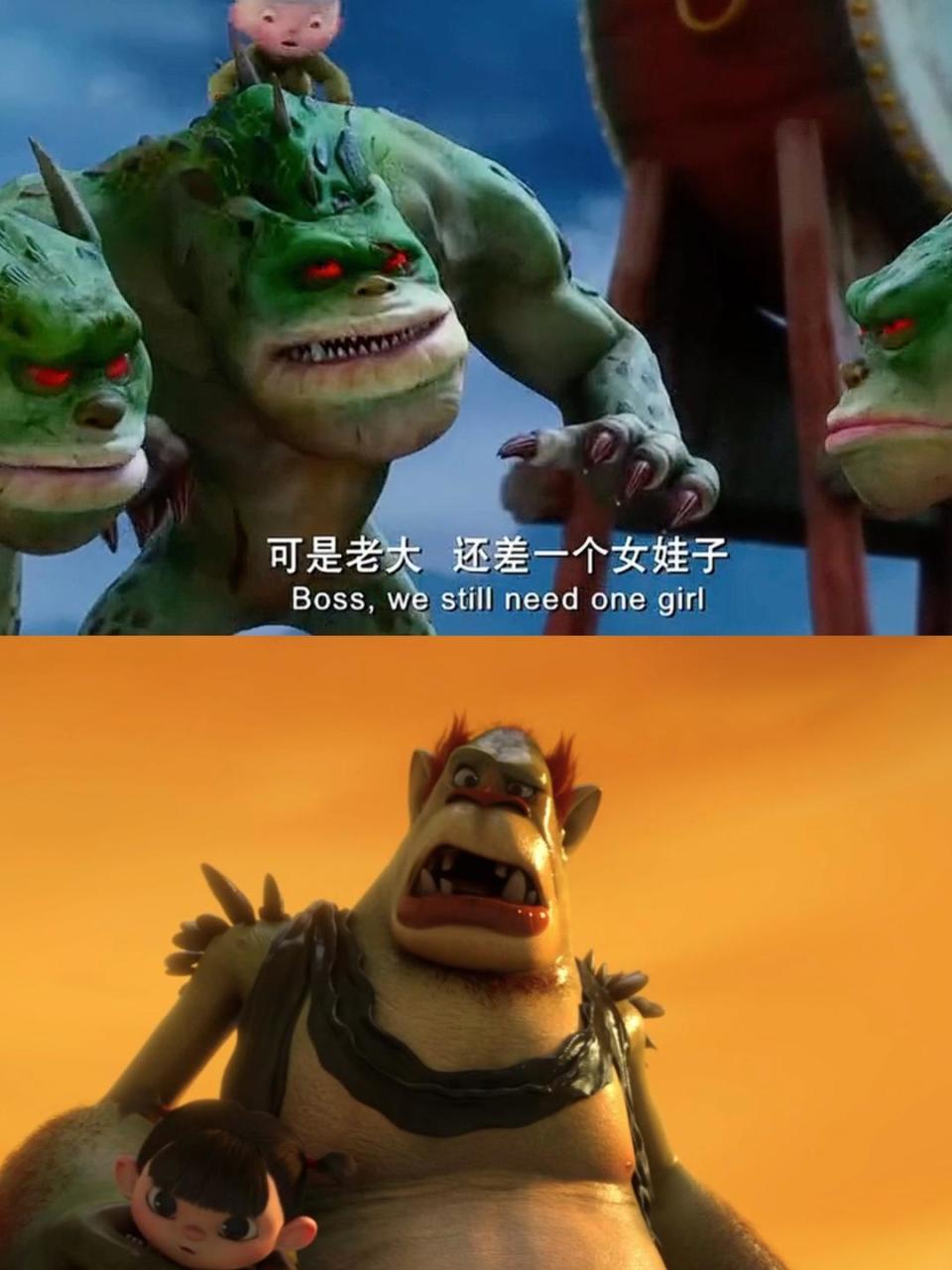 而《哪吒1》中泡泡怪抓走小女孩的片段及追跑逃情节,细看下来,几乎就是江流儿追击抓走小女孩的妖兽的情景再现。