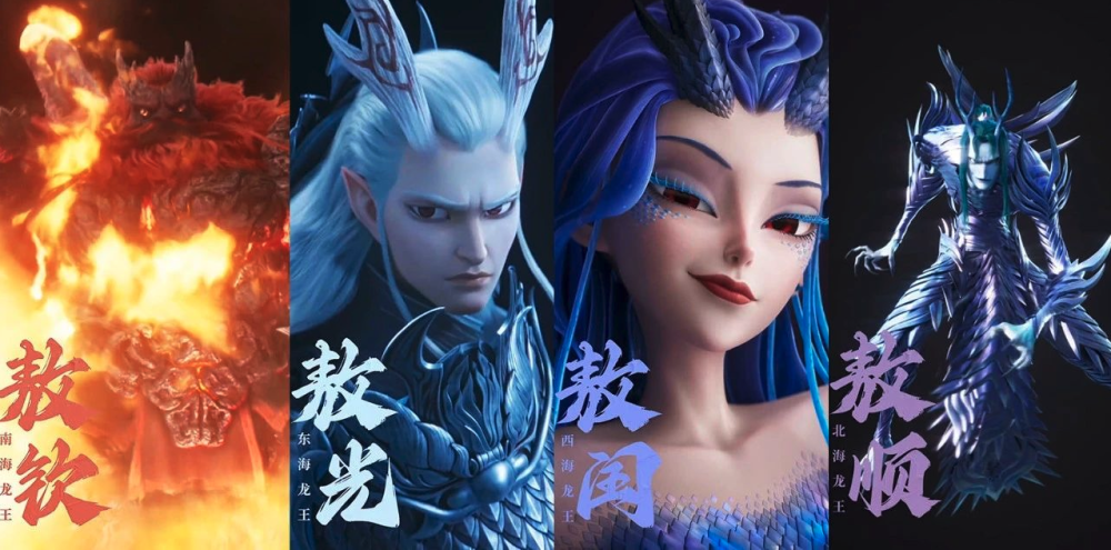 此外,其实还有诸多配角,譬如四海龙王、三星堆结界兽、陈塘关百姓、创办考仙班教练申正道,及以哥哥为榜样、纯真无邪的申小豹等,这些配角形象无不各具高光,也分别以不同的形式登上过热搜榜。