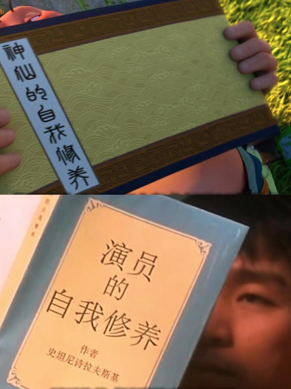 当哪吒进入山河设计图里的世界,太乙真人摊开一册卷轴,上书“神仙的自我修养”,这个“典故”自然是致敬《喜剧之王》里跑龙套的尹天仇。