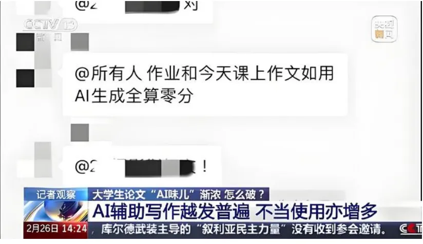 对此,各高校纷纷开始为AI工具的使用“立规矩”。某高校大一年级英语作业群里发布的一份群公告显示,“作业和今天课上作文如用AI生成全算零分”。诸如此类现象引发广泛关注。