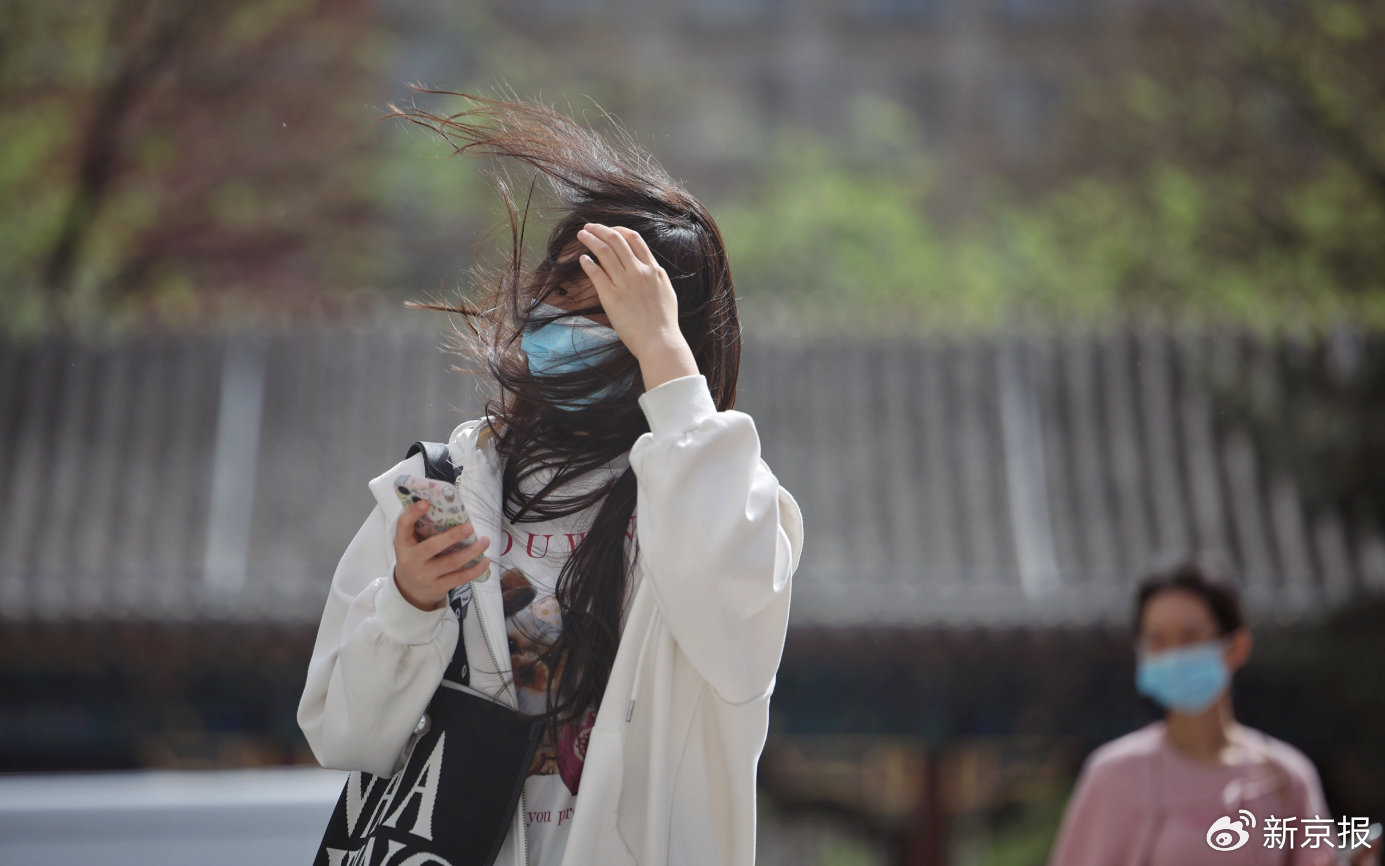 ▲资料图:2024年4月15日,复兴门,大风吹起女孩长发。新京报记者 薛珺 摄