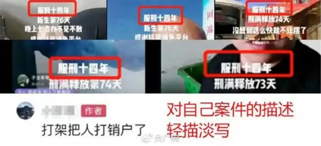 此前,在一些短视频平台搜索“刑满释放”,会出现不少自称服过刑的博主,他们用短视频或者直播分享经历,被称为“浪子回头励志网红”的新赛道。部分博主拿服刑当“卖点”博流量,甚至以此为“荣”,引发争议。