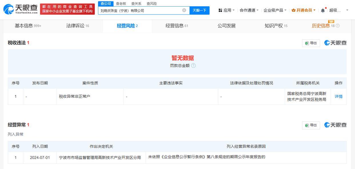 刘晓庆被举报涉事公司已经营异常(图源:天眼查)