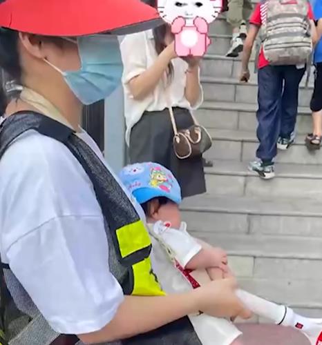 5月13日,广西百色一女子发视频称,自己孩子在右江区实验小学上三年级,学校家委会强制给家长排班轮值护学岗,自己被迫抱着2个月大的婴儿站岗。