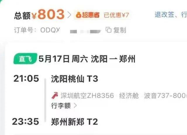 李女士提供的其表弟机票订单截图(图片来源:极目新闻)