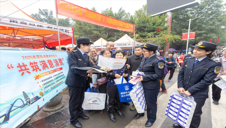 市场监督管理局工作人员向消费者宣传识假辨假技巧