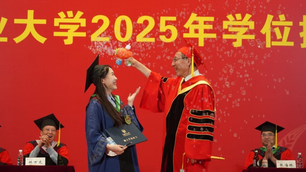 6月17日,中国农业大学举行2025年毕业典礼暨学位授予仪式。在专场学位授予仪式现场,校长孙其信为提前预约的毕业生单独拨穗,从上午9:30开始,一直到深夜。会整活的毕业生,再加上平易近人的孙其信校长,晒出的照片格外精彩,有人把校长抱了起来,有人和校长戴墨镜耍酷……从清晨到深夜,孙其信不仅全程陪伴,还满足显眼包的各种需求!当天直播持续了14个多小时。6月18日早8:30,校长再次来到西校区毕业典礼,继续为余下毕业生拨穗。