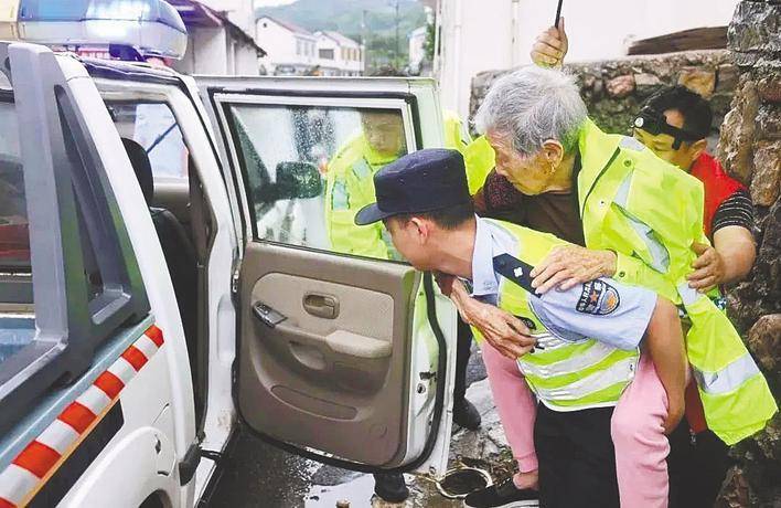 松滋民警帮助行动不便的村民转移。(湖北日报通讯员 邓玥梅 周健 摄)