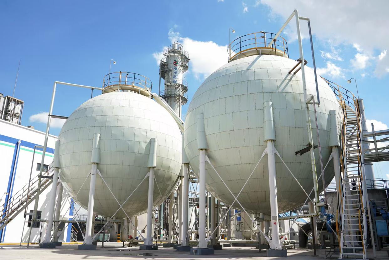 国家电投上海长兴岛热电有限责任公司里的球形碳储设备。 新华社记者 陈浩明 摄 记者在国家电投上海长兴岛热电有限责任公司里看到,新“长”出来的两个高大的球形碳储设备格外惹眼。一旁的运维室里,作为碳捕集技术员的两名“00后”小伙子秦佳伟和吴皓然,一边关注设备运行数据,一边写着运行手记。