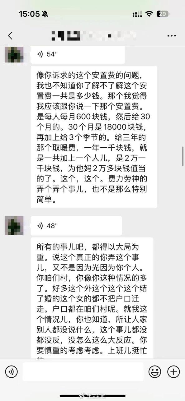 李女士与村书记的聊天记录截图